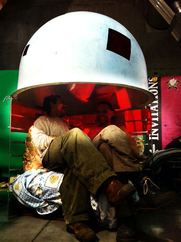 Alle meubilair van expansievaten en zitzakken van KUUBzakken gevuld met zand. website